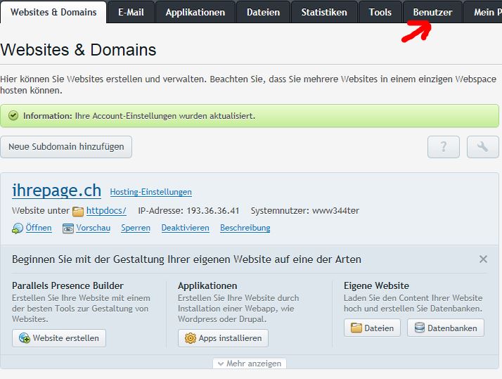 Melden sie ich am Hosting Control Panel an via https://servername.simplehosting.ch:8443